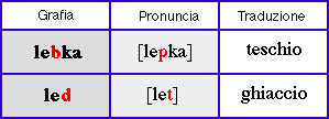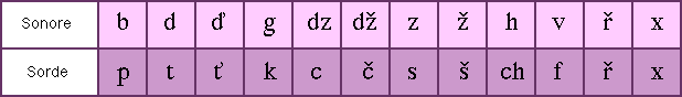 Il contrario, infatti, che una sorda diventi sonora, è raro in cèco (ma frequente in slovacco). In ogni caso questo è lo specchietto delle sonore e delle loro rispettive sorde: