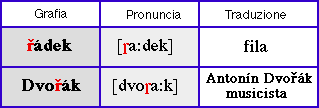 La vibrante fricativa ř è consonante tipica del cèco. Suono di non facile apprendimento (gli psicologi ricordano che è l'ultimo suono che i bambini cèchi imparano a pronunciare), può essere resa come una r italiana combinata con la j dolce francese.