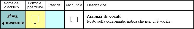 Identico nell'aspetto allo šewa mobile, che nota la vocale semimuta, è lo šewa quiescente, che indica in realtà assenza assoluta di suono vocalico.