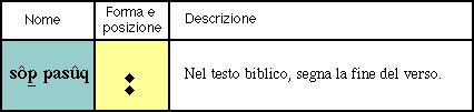 L'unico vero segno d'interpuntizione nell'ebraico biblico è il cosiddetto sôp pasûq, due punti che venivano posti a segnare la fine del verso.
