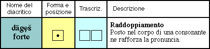 Come il lene, il dāgẹš forte consiste anch'esso in un punto posto nel corpo della lettera, ma in questo caso nota la geminazione della consonante, che viene ad avere un suono rafforzato.