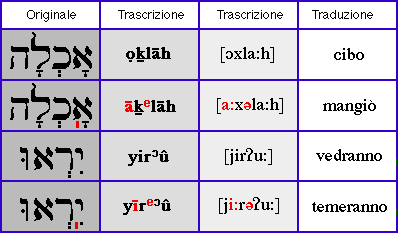La scrittura tradizionale ebraica non segna le vocali, e quando si leggevano le Scritture bisognava evitare al massimo le ambiguità. Le notazioni vocaliche vennero introdotte soltanto verso il VII secolo dai "puntatori" [naqdanîm]. Costoro idearono e applicarono al testo consonantico tradizionale un sistema di punti e lineette, da disporre sopra o sotto le lettere, allo scopo di facilitare e assicurare la retta pronuncia del libro sacro.