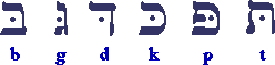 Un asse di opposizione, nella fonetica ebraica, gioca sul contrasto tra consonanti occlusive e fricative. Essa riguarda le sei consonanti b g d k p t [bēt, gimẹl, dālẹt, kap, pē e tāw], le quali possono presentare sia la pronuncia occlusiva che quella fricativa.