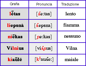 Per indicare una consonante palatilizzata dinanzi a vocale non palatale, il lituano interpone una i puramente grafica, che non va pronunciata.