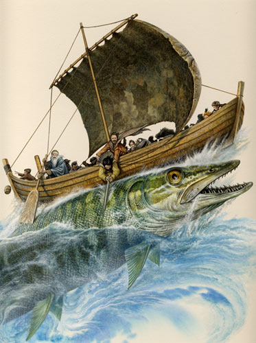 barca di Väinämöinen si arena sul dorso di un pesce. In un'altra versione,