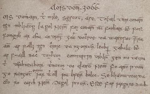 Aois doṁoin, dá míle cúicc cęd trioċa a ḋó. |