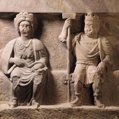 i tratti somatici sono semplificati, i panneggi rudimentali,