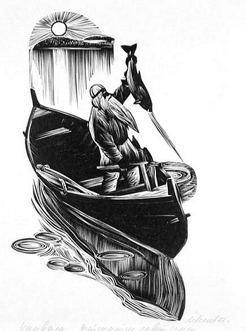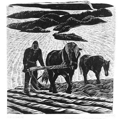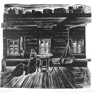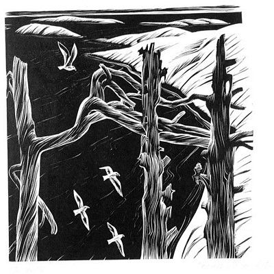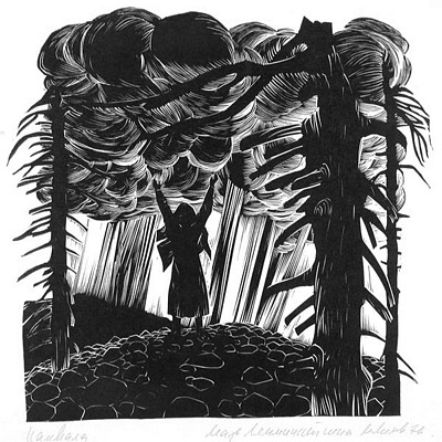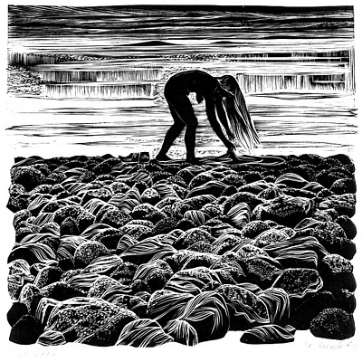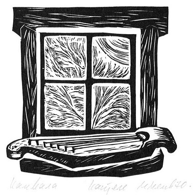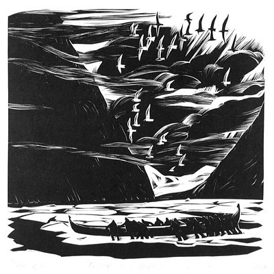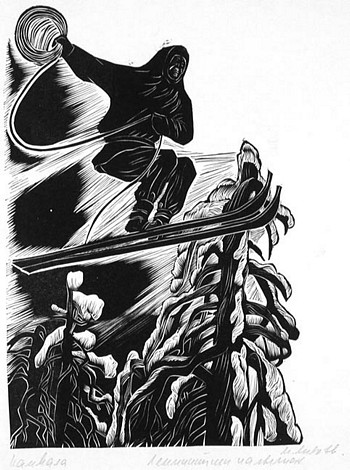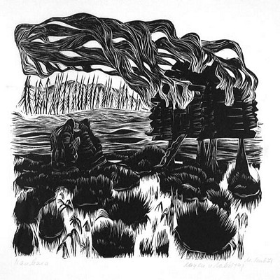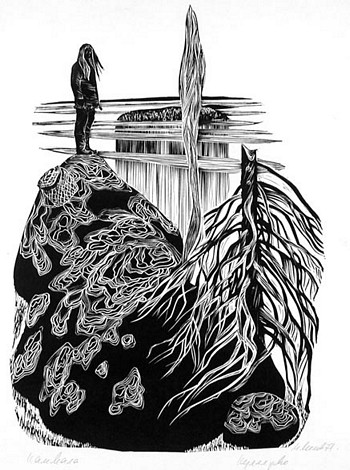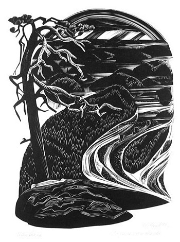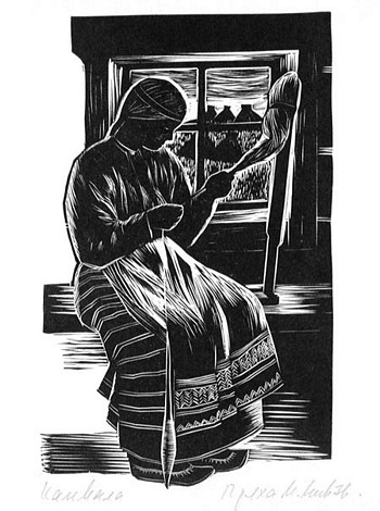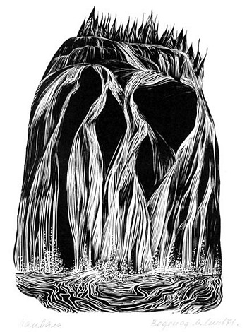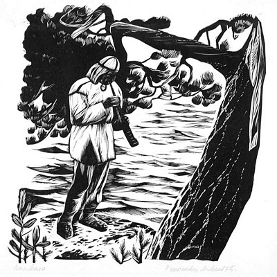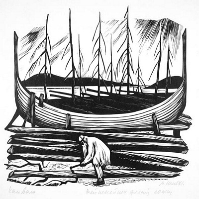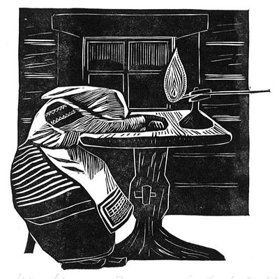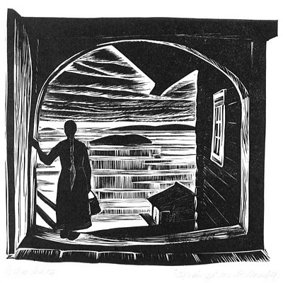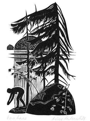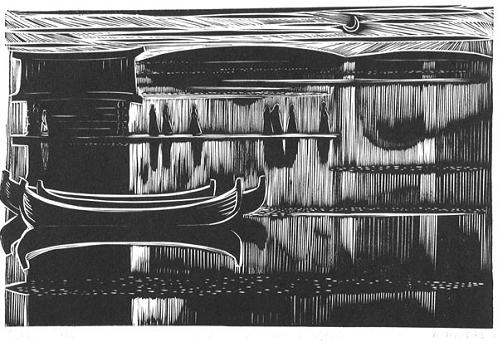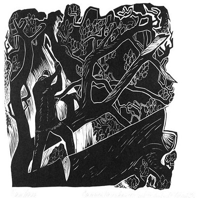 dall'artista, la linoleografia: il disegno viene inciso su una