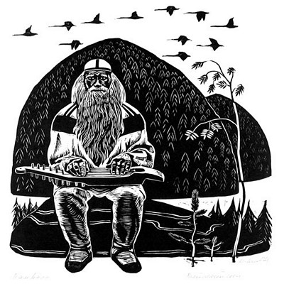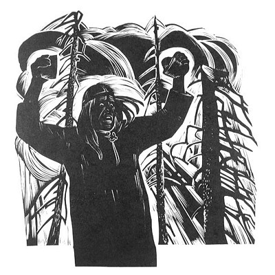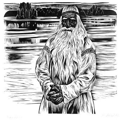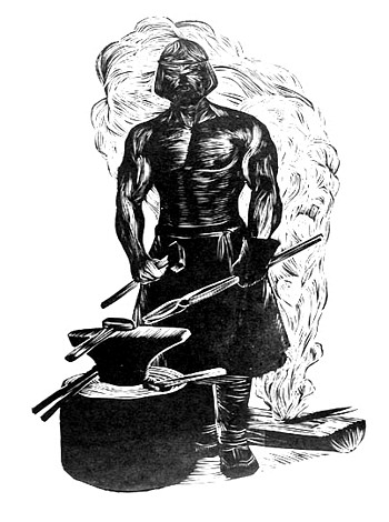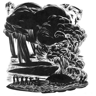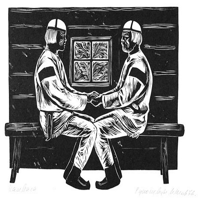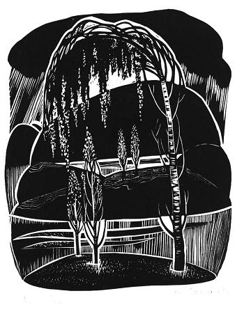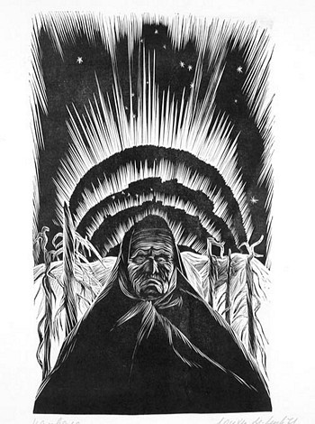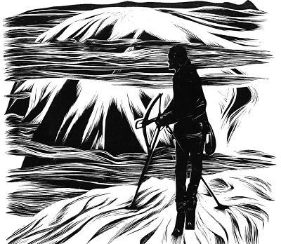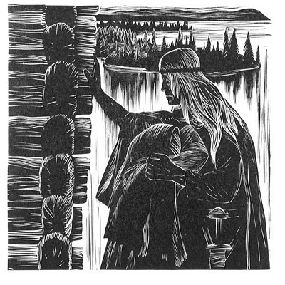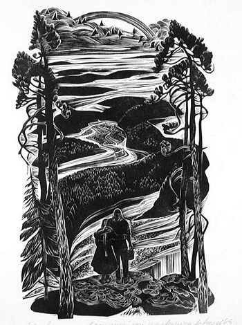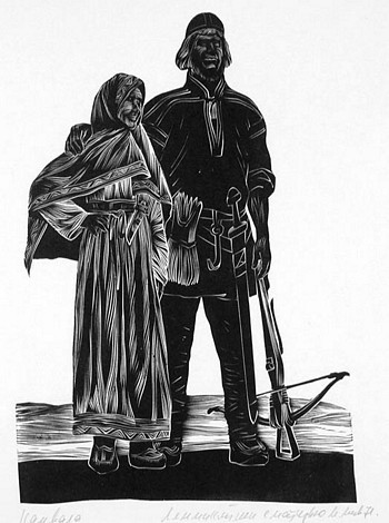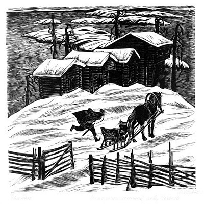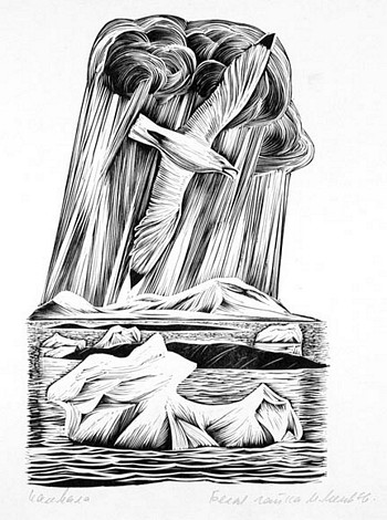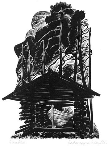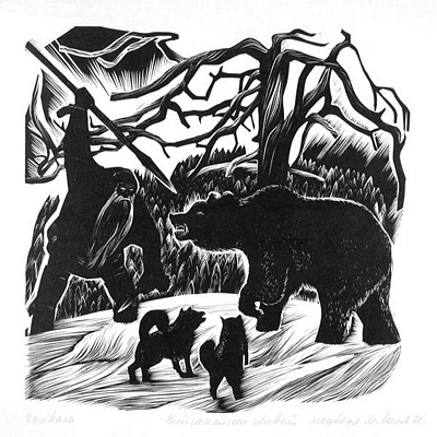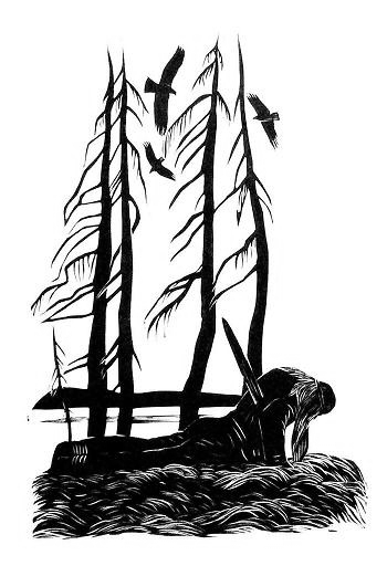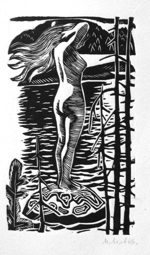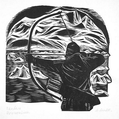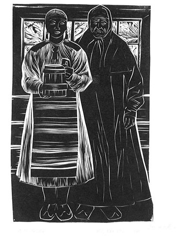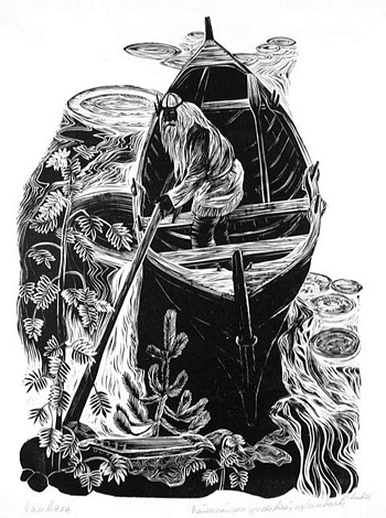 dall'artista, la linoleografia: il disegno viene inciso su una
