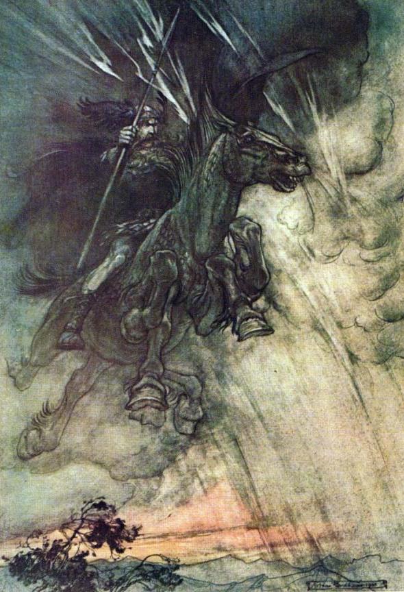 Óðinn era rappresentato alla testa dell'esercito di anime che cavalcava
