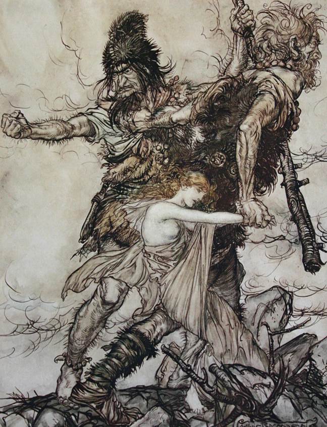 che abitava nelle imponenti montagne nei dintorni della città, e lo convinsero a compiere lui l'ingrato lavoro. Il gigante accettò,