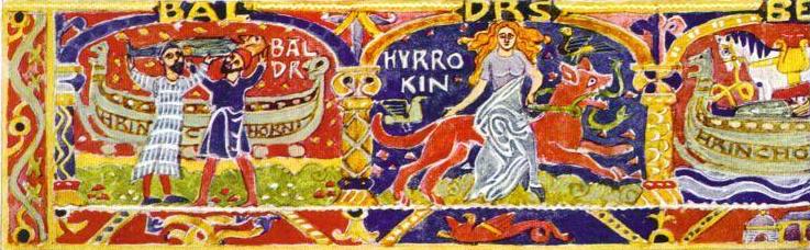 vampa di fuoco. Dietro di lui, a destra, Freyr