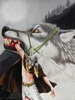 sulla sua spalla e la gamba destra infilata nelle fauci di un lupo. La figura è