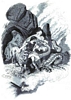 particolare, una piccola figura che si protende verso le fauci spalancate di