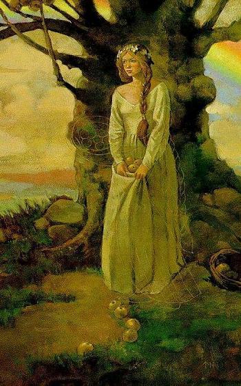 Iðunn, che conserva nel suo scrigno di frassino le mele che gli dèi devono