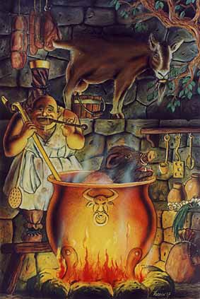 cinghiale [galti]. Che Andhrímnir fosse un cuoco [steikar],