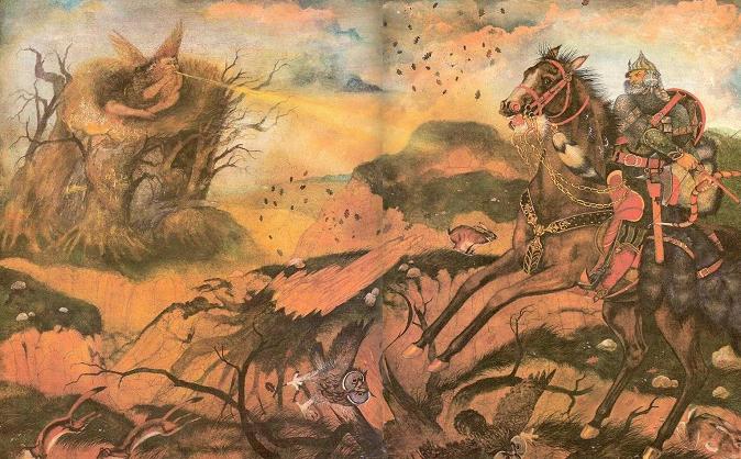 combatte contro Il'ja stando a cavallo. (Propp 1958)