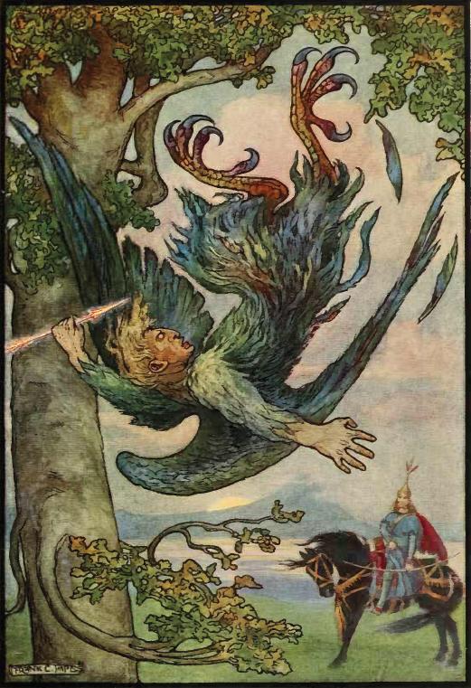 Divŭ, che in forma di uccello lo guata dall'alto di