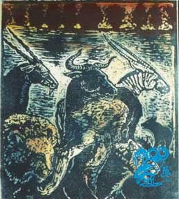 Gilgameš si fece avanti. I due eroi si avvinghiarono, sbuffando come tori,