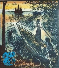 pietre pesanti e si tuffò dalla barca. Trascinato dalle pietre sul fondo del