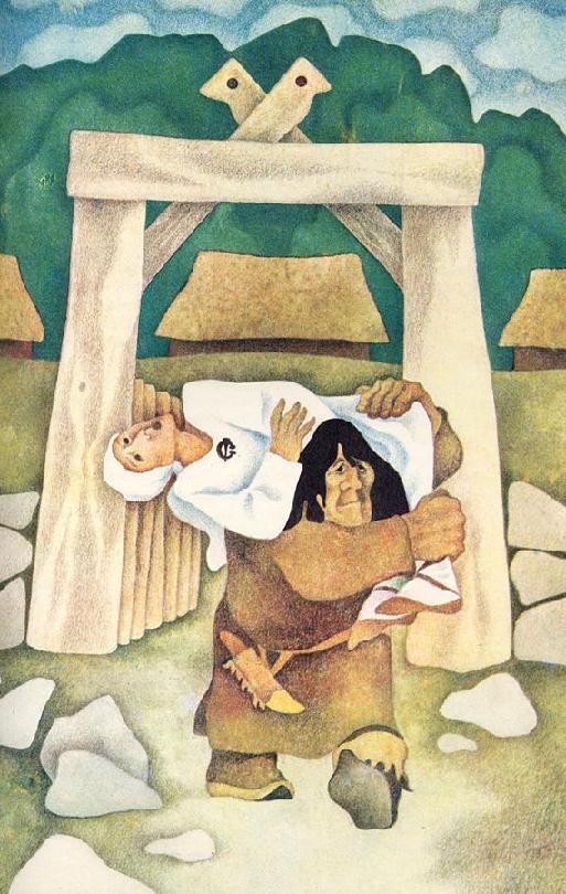 i suoi figli. E così, un giorno che questi erano lontani, a caccia, Tuuslar rapì