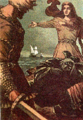 così Lāčplēsis partì dal suo villaggio, e si allontanò dalle regioni delle
