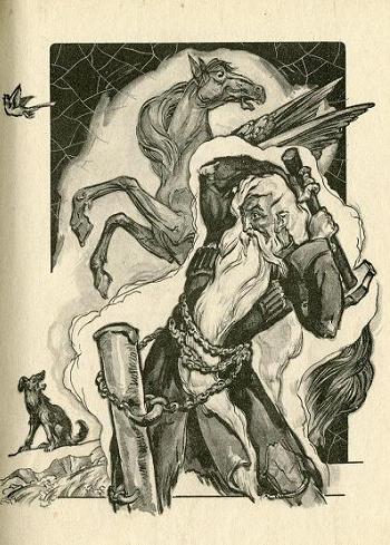 della terra. Un cane alato può fargli da compagno, un'aquila da torturatrice,