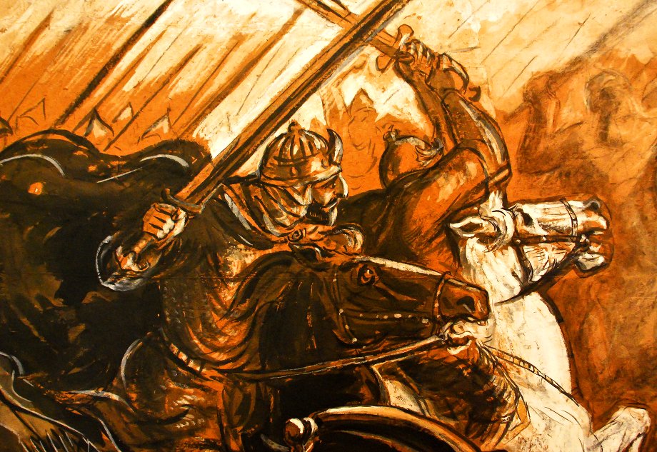 mito indoiranico del tricefalo, abbattuto dal un esito del dio tuono, come