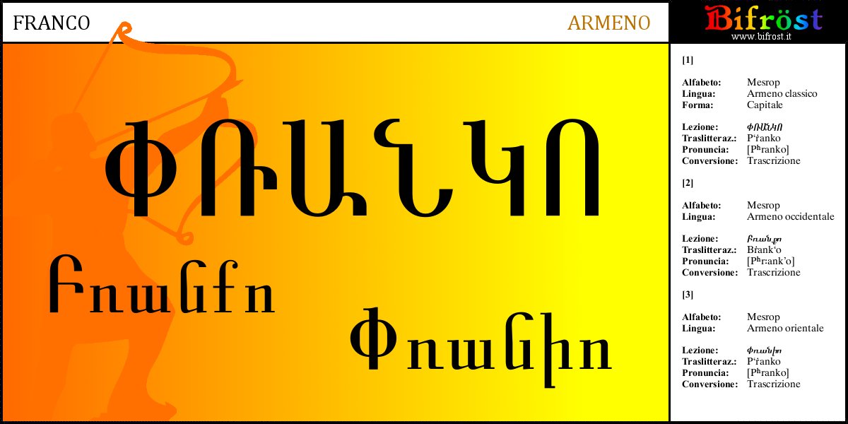 NB. L'ortografia orientale coincide in parte con l'armeno classico,