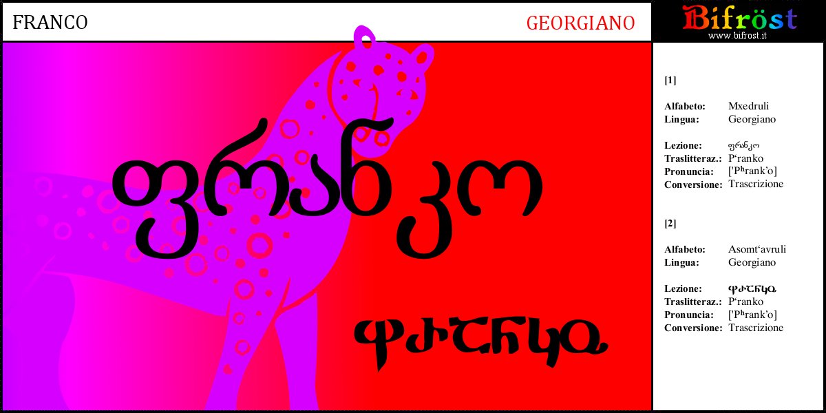 Offriamo la trascrizione del nomen in due dei tre alfabeti nazionali georgiani: