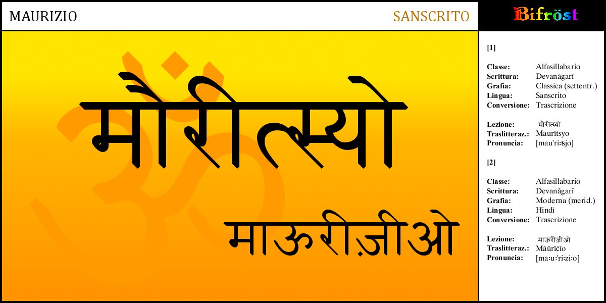 Il vostro nomen verrà riportato in caratteri devanāgarī, secondo