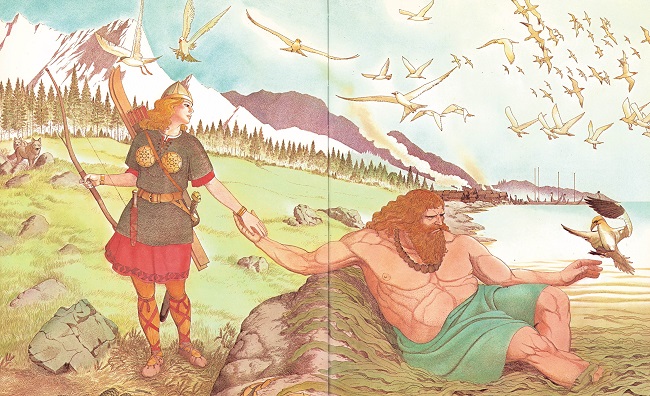 Altri raccontano invece che un'aquila afferrò la dea tra gli artigli e scomparve con lei tra le nuvole. Il rapace era il gigante Þjazi il