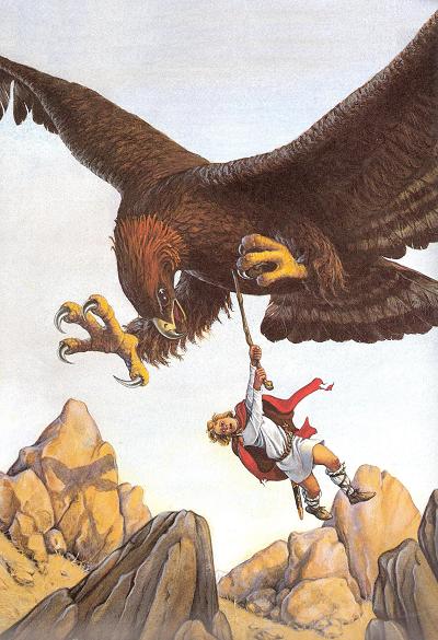 acconsentire. Ottenuta la promessa, l'aquila tornò verso terra e lo lasciò